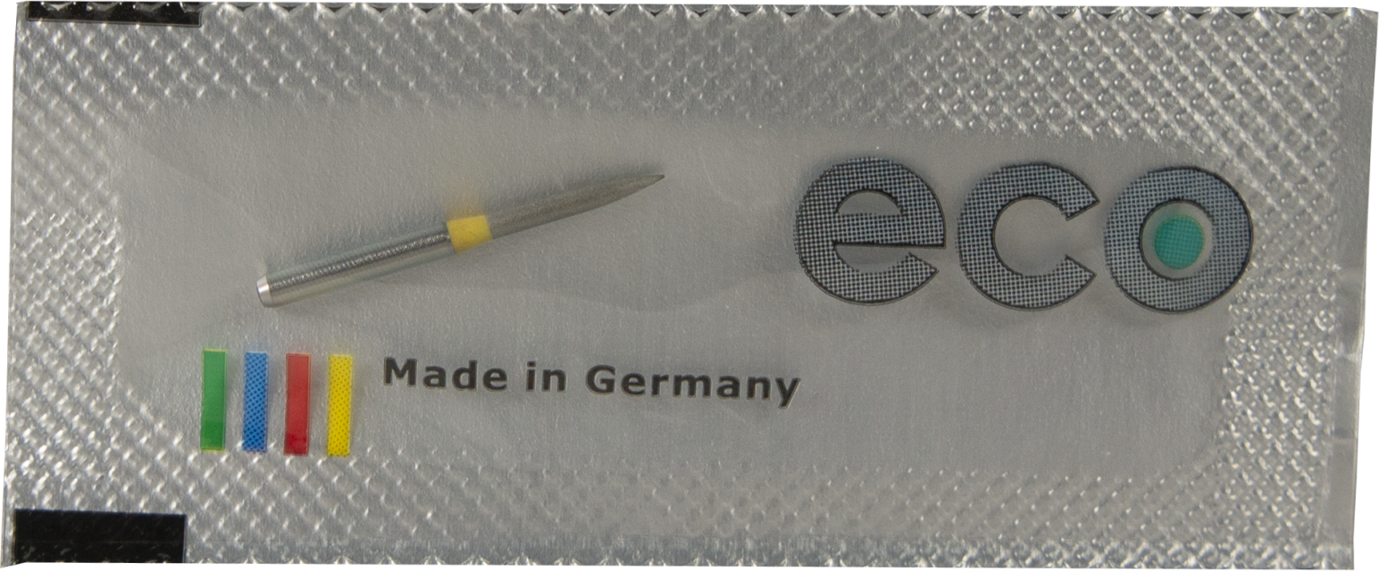 Алмазный бор ECO E 862 EF 313.012 применяется для обработки поверхностей под коронкование, а также кариозных полостей. Он маркирован желтым цветом, что указывает на сверхмелкий алмазный абразив рабочей части.