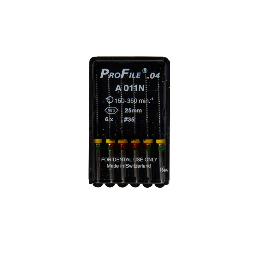 Про-файл № 35 Dentsply с конусностью рабочей части 04 применяются в эндодонтии для чистки и последующей формовки зубных каналов. Такая форма обеспечивает легкость введения в канал и точность манипуляций.